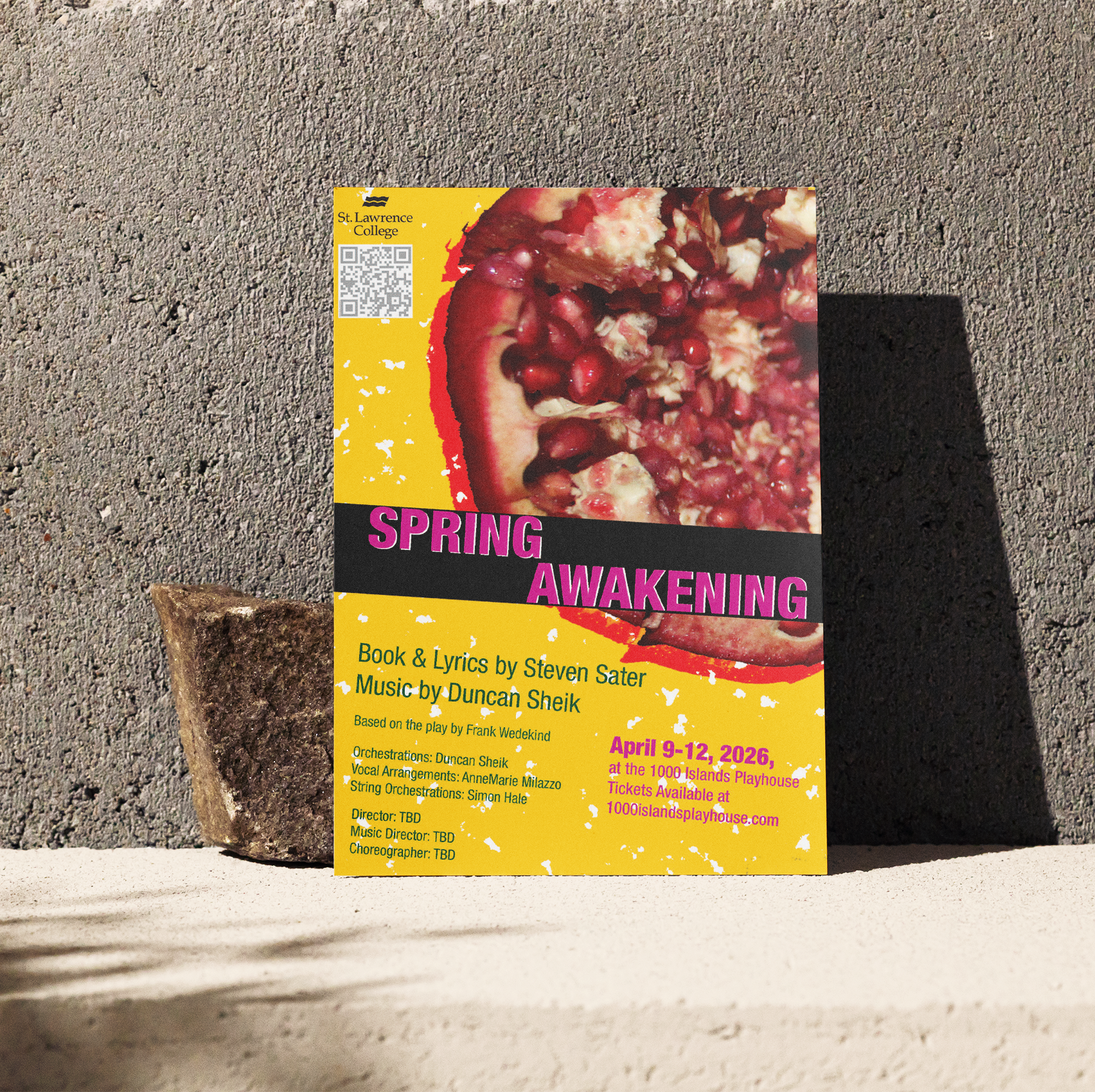 This project visually communicates the emotional intensity, youthful rebellion, and raw energy of the musical Spring Awakening, reflecting themes of discovery, identity, and defiance. Guided by the creative brief, the campaign was designed to capture attention, connect with students and theatre-goers, and reflect the show’s punk-inspired tone across multiple platforms, including a poster, Instagram post, paper mailer, and two additional promotional applications.